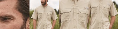 - Hook-and-loop rod holder with Columbia patch logo on left chest