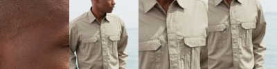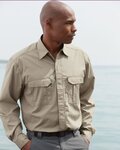2.4 oz., 100% polyester ripstop fabric; Omni-Wick™; Quick-dry; Omni-Shade™; UPF 40 sun protection; Anti-microbial treatment protects this product from bacterial growth; Button-down collar; Roll-up sleeves with tab holders; Vented.