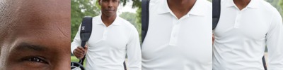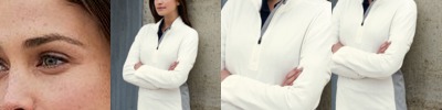 • Shoulder-to-shoulder taping with coverstitched collar