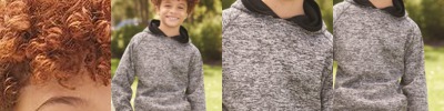 • Charcoal fleck body with contrast-color solid hood, drawcord and sleeves