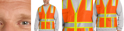 Two-tone contrast fabric under the reflective tape makes this breathable mesh vest stand out on the jobsite. 100% polyester mesh for breathability Durable, reflective 2-inch tape meets ANSI 107 requirements and provides 360-degree visibility on body Two-tone contrast fabric under reflective tape and contrast binding Left chest mesh pocket for essentials Interior lower right mesh pocket for additional storage Mic clip at left chest for easy access Molded center front zipper closure This garment must be fully zipped to be in compliance with ANSI 107 standards
