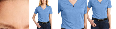4.5 oz/yd2 / 160 gsm, 100% polyester jersey; Moisture-wicking and antimicrobial properties; ChromaSoft™ technology combines the colorfastness of cationic dyes with soft cotton-feel performance; Tear away label; Fashion forward scoop feminine neckline; Active fit; Easy care;