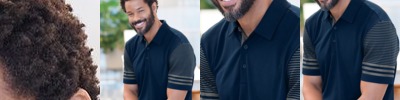 A polished and subtle stripe pattern, along with just the right amount of stretch, make this polo a welcome addition to any updated wardrobe. It's also snag-resistant and moisture-wicking, so you'll look sharp no matter what. 4.7-ounce, 95/5 polyester/spandex drop needle stripe jersey Snag-resistant Moisture-wicking Flat knit collar Tag-free label Stretch Open 3-button placket