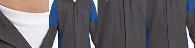 • Sizing by neck measurement, color swatch denotes sleeve length