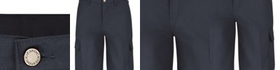 - Welt back pockets and pleated cargo pockets with hidden snaps