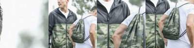 - Patented 2-in-1 windbreaker converts into functional drawcord backpack in seconds
