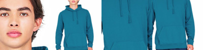 9.5 oz., 100% cotton fleece back, french terry ; French Terry Fleece; Lined hood; 2.5" heavyweight 1x1 rib on cuff and bottom; Generous front pouch pocket; Made in USA;