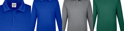 3.5 oz/yd2 / 130 gsm, 100% polyester interlock; Moisture-wicking and UV protection performance; Cationic dyes for superior brightness and color fastness; Three-button placket; Integrated collar stays; Dyed-to-match buttons; Tear away label;