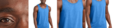 Retail fit Tear-away label Side seamed Shoulder taping Athletic Heather/Black Heather: 4.2-ounce, 90/10 Airlume combed and ring spun cotton/poly Heather CVC Colors: 4.2-ounce, 52/48 Airlume combed and ring spun cotton/poly