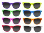 Brighten up your clients' faces and their days when you add these Neon Sunglasses to your advertising campaign. Our best seller now in fun colors! A new standard on our most popular sunglasses, these have a matte finish and neon frame plus matching neon arms. Available in seven colors: Orange, Yellow, Green, White, Neon Blue, Pink and Purple. Red Sunglasses are currently only available with a longer lead time and minimum order of 300 pieces. Each pair of sunglasses is made of recycled materials and has UV400 lenses. UV400 meets ANSI Z80.3 general purpose UV requirements. See how happy you can make them before they even sign on with your company! MOQ: 48 pieces per color for multi-color orders.