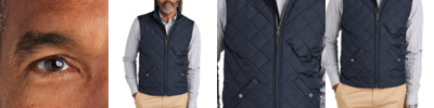 With a supple diamond-quilted shell designed to resist water and provide warmth when you need it, this vest delivers unbeatable performance and unmistakable style. 100% polyester shell and lining with a durable water-repellent (DWR) finish 2.9-ounce polyfill insulation Brooks Brothers tie-stripe hanging loop Metallion coil front zipper with metal Brooks Brothers Golden Fleece logo zipper pull and piped kissing welt Rib knit lined collar Hand pockets secured with Brooks Brothers logo snaps Interior zippered chest pocket Brooks Brothers tartan plaid on interior yoke and inside hand pockets Faux leather label patch Decoration access pocket
