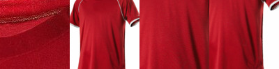100% polyester wicking knit * Wicks moisture * Ladies' fit * Tag-free label * Asymmetrical contrast color yoke