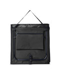 - Folds for easy carrying with handle, adjustable carry strap and hook and loop type fastener