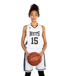 92% polyester/8% spandex (white) * 92% nylon/8% spandex (color) * Dri-Power(r) Moisture Wicking Technology * Ladies' fit * Updated tailored fit * Tag-free label * Outside locker label * V-neck collar * Contrast color inserts * Racerback styling * Designed to be NFHS compliant