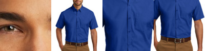 Lightweight and breathable, our cotton-rich shirts keep their professional edge thanks to a stain-release finish, which releases stains during washing. Budget-friendly and durable, these virtually carefree shirts feature an Easy Care blend and finish. They also color-coordinate with our Core Classic Pique Polos for seamless uniforming. 3.3-ounce, 55/45 cotton/poly Dyed-to-match buttons Button-down collar Box back pleat Left chest pocket.