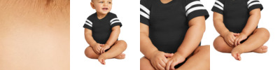 Now the youngest fan is ready to cheer on the team. Designed with contrasting sleeve stripes and coverstitched yoke, this bodysuit has a sporty look and exceptional comfort. 4.5-ounce, 100% combed ring spun cotton fine jersey 60/40 combed ring spun cotton/poly vintage heathered fine jersey (vintage colors) Side seamed Ribbed collar EasyTear ™ label for additional comfort and ability to brand as your own Back neck and shoulder-to-shoulder taping Coverstitched front and back yoke Contrasting stripes on sleeves Double-needle sleeves Double-needle ribbed binding on leg openings Innovative three-snap closure