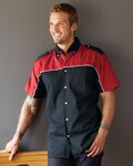 Drive like the wind in this bold colorblock shirt with white piping on front and back.