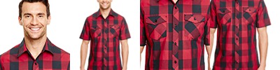 3.3 oz. 55/45 cotton/polyester; 2 chest pockets, button flaps; Front stitching and on yoke; Blue & red have black inner collar; Hem sleeves and bottom;